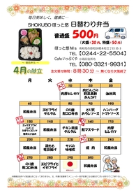 | Cafeいっぷくや (小高区役所内)ほっと悠Msの出張所 〒979-2195 福島県南相馬市小高区本町二丁目78(小高区役所内) TEL 080-3321-9931 |